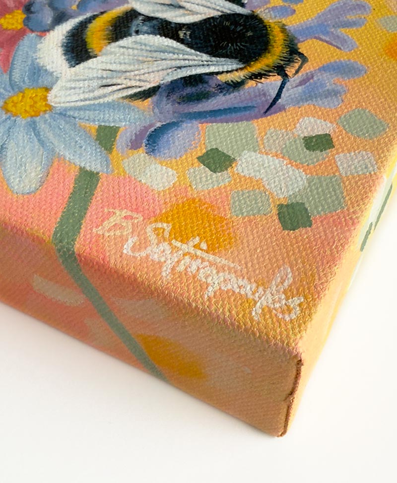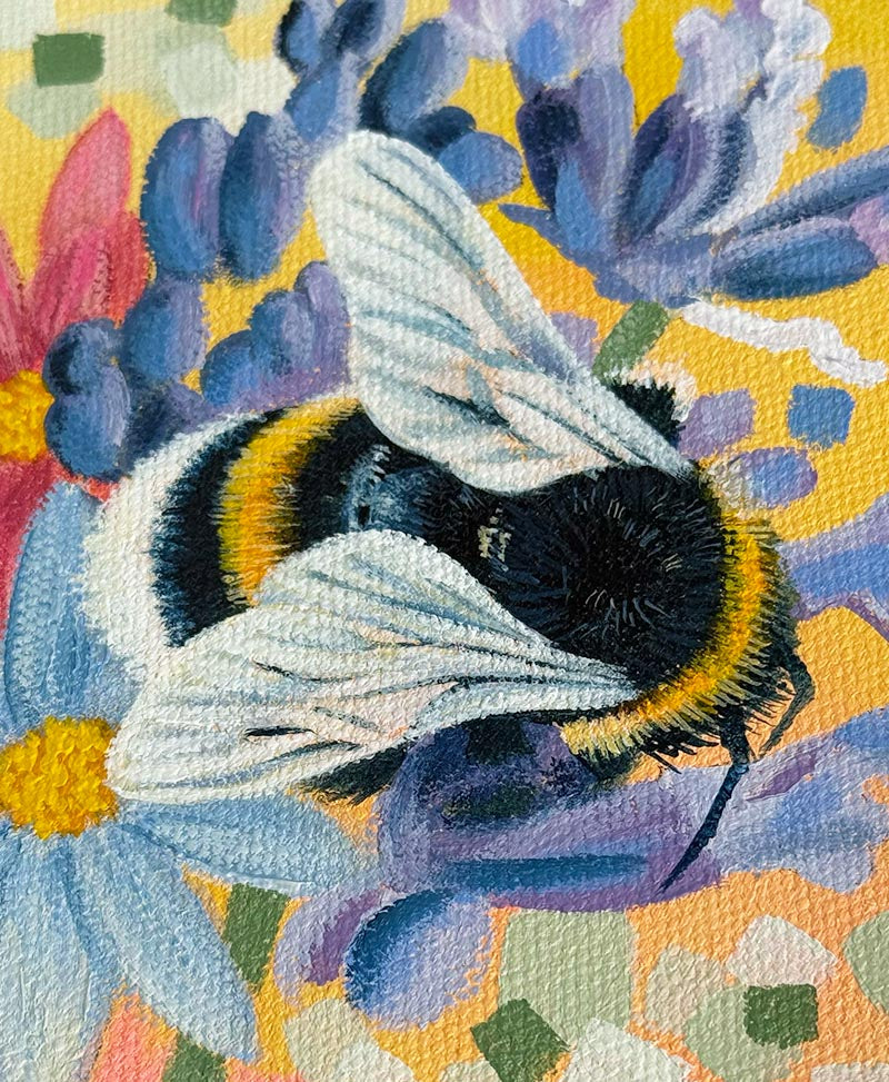 Bees are often represented as symbols of prosperity, fertility, community, and hard work across various cultures. This piece is one of three pieces created in a mini series celebrating the theme of abundance associated with bees.